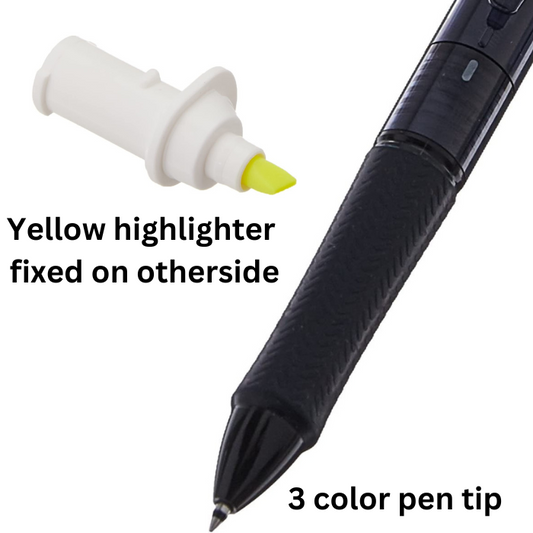 Pilot Acroball Spotliter 3 Color 0.7 mm Ballpoint Multi Pen + Highlighter - Black Body & Yellow Highlighter